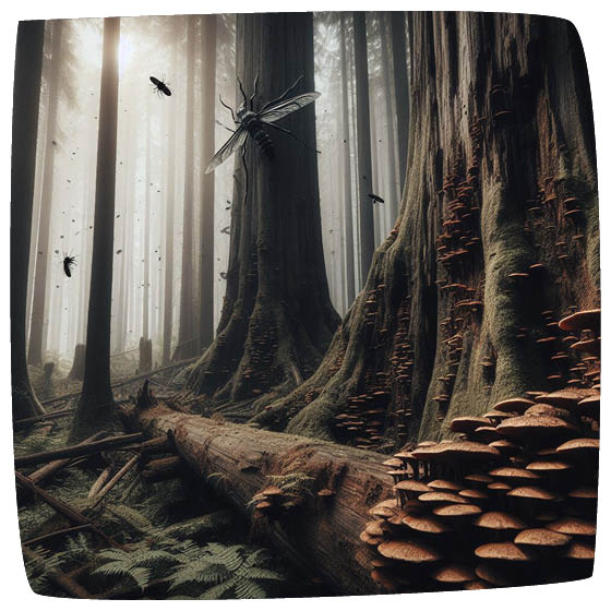 Si personne ne s’occupait de ces déchets, on serait littéralement envahi ! Les décomposeurs (champignons et insectes) agissent comme des éboueurs, pour recycler ces matériaux !